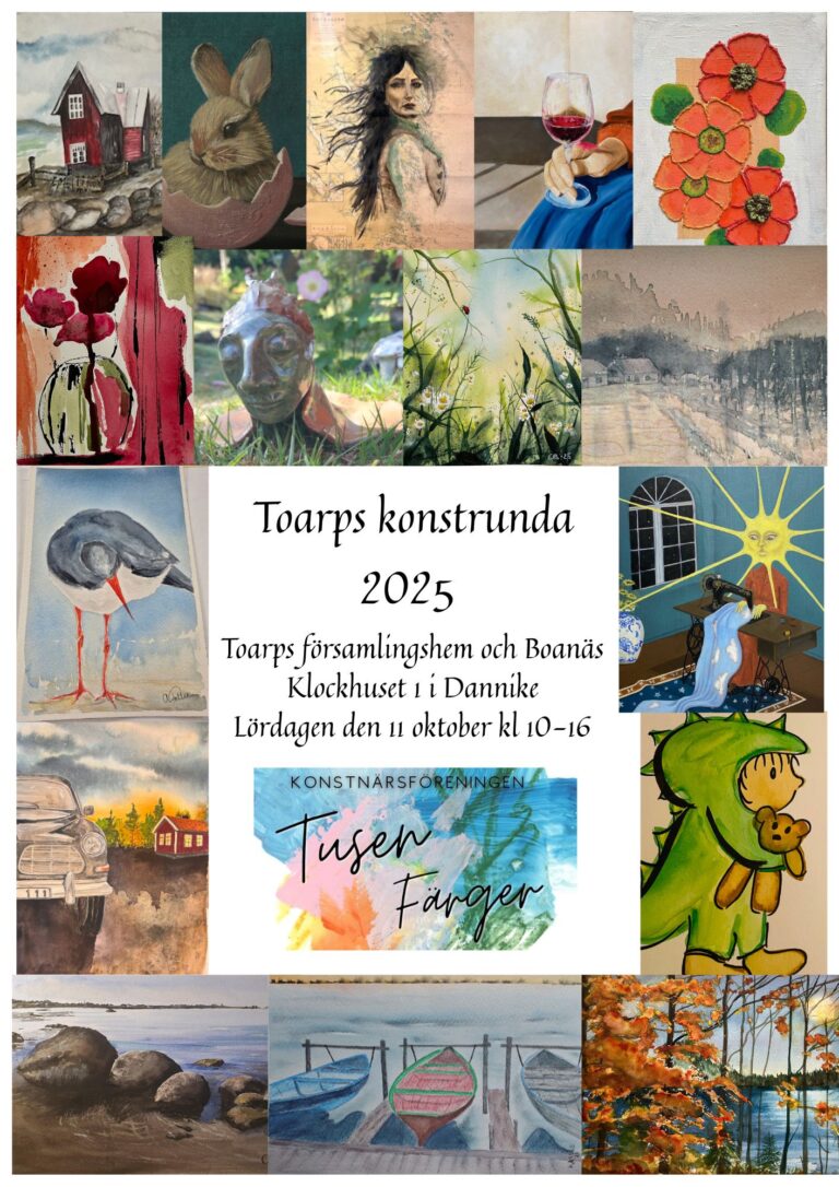 » 11/10 2025 •Aktiviteter Toarps konstrunda 2025 Konstnärsföreningen Tusen Färger anordnar Toarps konstrunda 2025.